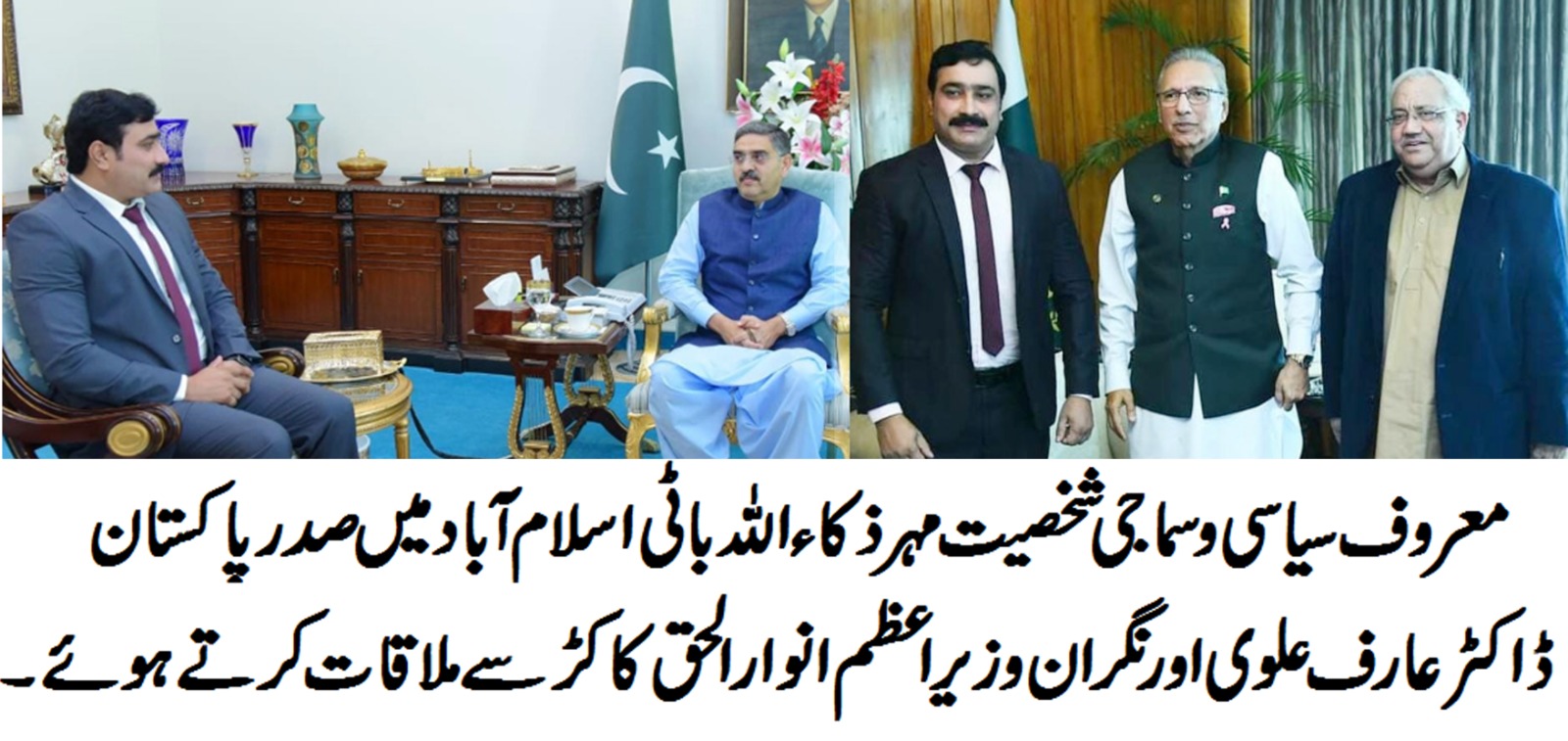 شورکوٹ سے معروف سیاسی و سماجی شخصیت مہر ذکاءاللہ باٹی کی اسلام آباد میں صدر ڈاکٹر عارف علوی اور نگران وزیر اعظم انوار الحق کاکڑ سے ملاقات،علاقائی مسائل سے آگاہ کیا۔