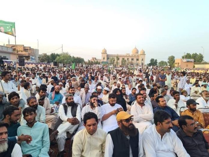 جس میں ن لیگ کی قیادت سابق وفاقی وزیر خرم دستگیر ڈویژنل صدر حاجی محمد اکرم انصاری،حافظ امجد گجر مولانا محمد آصف معاویہ سیال، سابق ضلعی صدر و ایم پی اے خالد غنی چوہدری فوج رمضان بلوچ قاری عمران معاویہ انصر صدیقی اور کارکنان کی بڑی تعداد جلسہ گاہ میں موجود ہے