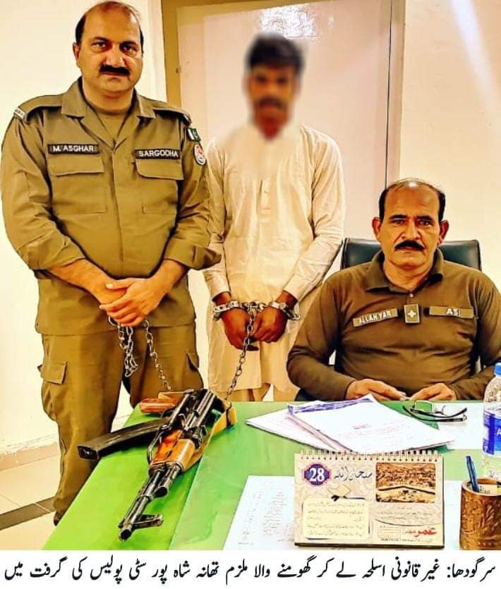 *سرگودھا: غیرقانونی اسلحہ لے کر گھومنے والا ملزم تھانہ شاہ پور سٹی پولیس کی گرفت میں*
