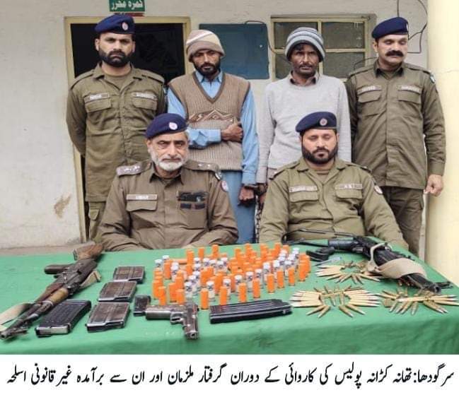 سرگودھا:غیرقانونی اسلحہ رکھنے والوں کے خلاف تھانہ کڑانہ پولیس کا کریک ڈاؤن