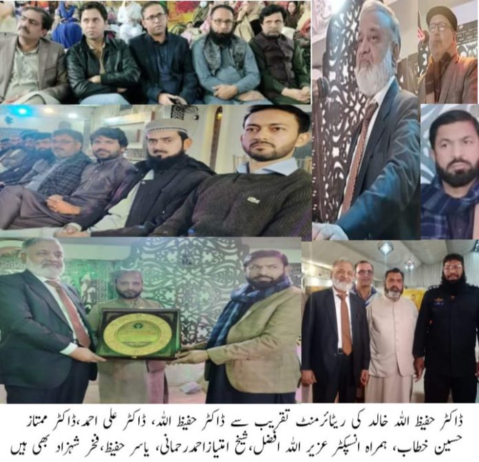 رضائے الہی کو مشن بنا کر فلاح انسانیت کیلئے شبانہ روز کام کیا۔ڈاکٹر حفیظ اللہ خالد، ڈاکٹر حفیظ اللہ خالد کی مسیحائی خدمات قابل فخر اورقابل رشک ہیں،ڈاکٹر ممتاز حسین،ڈاکٹر حفیظ صاحب نےعوام،میڈیا اور ڈاکٹرز کے درمیان مصالحانہ پل کا کرداراداکیا،شیخ امتیازاحمدرحمانی