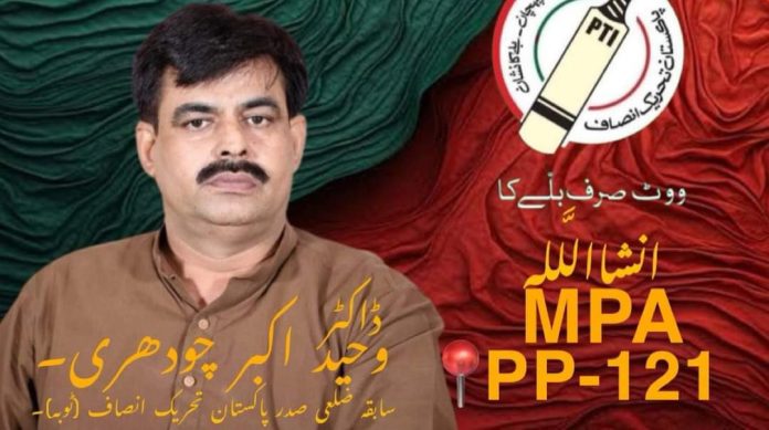 پی پی 121 ٹوبہ ٹیک سنگھ سے رہنما پاکستان تحریک انصاف ڈاکٹر وحید اکبر چودھری کے کاغذات نامزدگی منظور