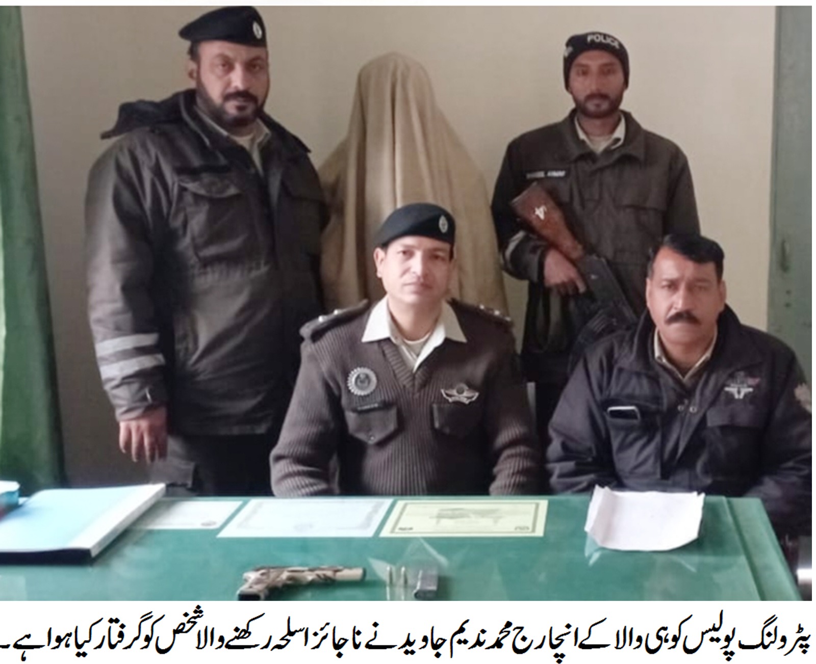 خانیوال پٹرولنگ پولیس کوہی والا کی ناجائز اسلحہ رکھنے والوں کے خلاف کاروائی،ناجائز پسٹل برآمد،ملزم گرفتار،تھانہ صدر کبیروالا میں مقدمہ درج