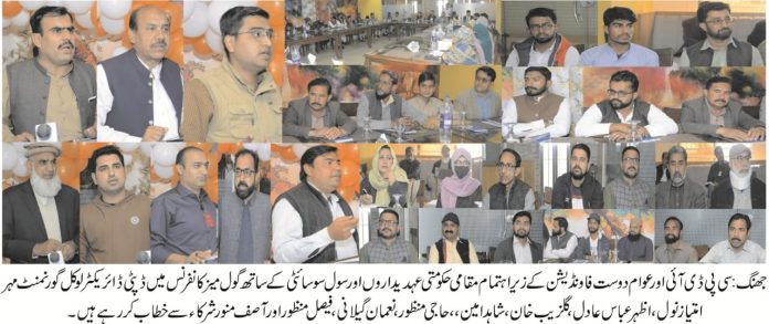 جھنگ۔سی پی ڈی آئی اور عوام دوست فاونڈیشن کے زیر اہتمام مقامی ہوٹل میں مقامی حکومتی عہدیداروں اور سول سوسائٹی کے ساتھ گول میز کانفرنس کا اہتمام کیا گیا