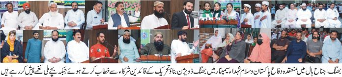 جھنگ ڈویژن بناؤ تحریک اور پوزیٹو جھنگ کے زیر اہتمام دفاع پاکستان و سلام شہداء سیمینار کا انعقاد جناح ہال ضلع کونسل جھنگ میں کیا گیا