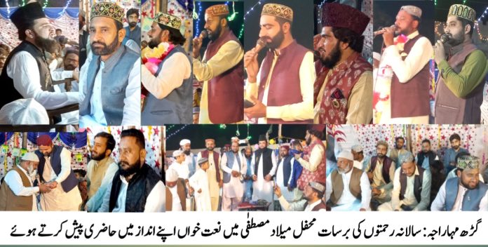 گڑھ مہاراجہ: سالانہ رحمتوں کی برسات محفل میلاد کا انعقاد، مولانا شاہزیب بخاری، عامر محبوب چشتی، قمربرادران، سجاد احمد صدیقی نے حاضری پیش کی