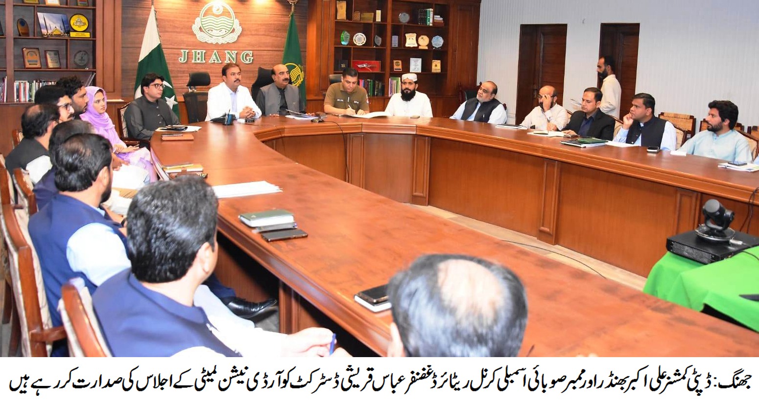 جھنگ(سٹارنیوز)ڈپٹی کمشنر علی اکبر بھنڈر اور ممبر صوبائی اسمبلی کرنل ر غضنفر عباس قریشی کی زیر صدارت ڈسٹرکٹ کوارڈینیشن کمیٹی کا اجلاس منعقد ہوا جس میں ڈسٹرکٹ پولیس آفیسربلال افتخار کیانی ، مولانہ محمد آصف معاویہ،امیر عباس سیال، سابق ممبر صوبائی اسمبلی سلطان سکندر بھروانہ،سابق ممبر صوبائی اسمبلی شیخ محمد یعقوب، سابق ممبر صوبائی اسمبلی فیصل حیات جبوآنہ، سابق ممبر صوبائی اسمبلی خالد غنی سمیت اسسٹنٹ کمشنرز، دیگر ضلعی افسران بھی شریک تھے۔ اجلاس میں متعلقہ محکموں کی جانب سے کمیٹی ممبران کو ضلع میں جاری اور نئی ترقیاتی سکیموں بارے تفصیلی بریفنگ دی گئی۔ اس موقع پر متعلقہ افسران کو جاری ترقیاتی سکیموں میں میٹریل کی کوالٹی چیک کرنے کے حوالہ سے بھی احکامات جاری کئے گئے۔ دوران اجلاس ممبر صوبائی اسمبلی کرنل ریٹائرڈ غضنفر عباس قریشی نے اپنے حلقہ میں نئے نصب ہونے والے واٹر فلٹریشن پلانٹس کو جلد فنکشنل کرنے کی نشاندہی کی۔جس پر ایکسین پبلک ہیلتھ نے جاری کام پر بریفنگ دی۔سڑکوں کی بحالی کے جاری کام میں تیز رفتار اقدامات کرنے اور بارش کے بعد سڑکوں کے اطراف گڑھے بھرنے بارے محکمہ ہائی وے کو ہدایات جاری کی گئیں جبکہ ٹرانسپورٹ کے کرایوں پر مقررہ ریٹس پر عملدرآمد بارے سیکرٹری ڈی آر ٹی اے کو احکامات جاری کئے گئے۔کمیٹی ممبران نے ٹریفک پولیس کو کم عمر ڈرائیوراور بغیر لائسنس کے گاڑی چلانے والوں کے خلاف سخت کارروائیاں کرنے کے بھی احکامات جاری کئے۔ محکمہ صحت کے افسران کو تمام ہسپتالوں اور مراکز صحت میں ڈاکٹر و سٹاف کی سو فیصد حاضری یقینی بنانے کی ہدایات کی گئیں جبکہ ڈیوٹی سے غیر حاضر ڈاکٹرز و سٹاف کے خلاف محکمانہ کارروائیاں کرنے کی تاکید کی گئی۔ ڈپٹی کمشنر نے بتایا کہ وزیر اعلی پنجاب مریم نواز شریف کی ہدایات پر گڈ گورننس اور شفافیت کے حوالے سے اقدامات جاری ہیں۔