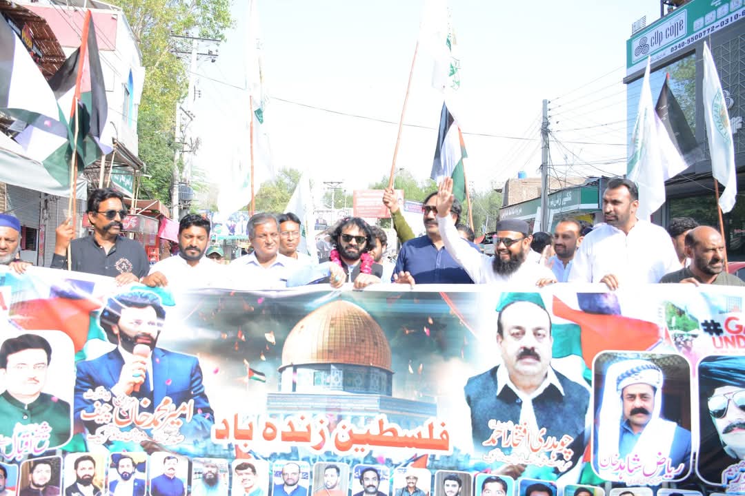 فلسطینیوں پر اسرائیل کی جانب سے جاری ظلم و بربریت کے خلاف جھنگ ڈویژن بناؤ تحریک کی جانب سے احتجاجی ریلی نکالی گئی