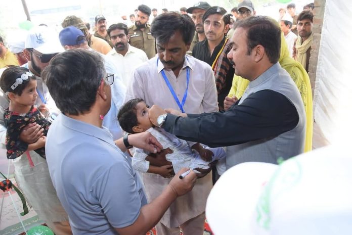 ڈپٹی کمشنر نے یونین کونسل کوٹ لکھنانہ کی آبادی پٹھان میں بچوں کو پولیو سے بچاو کے قطرے پلائے۔