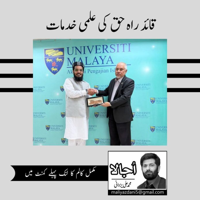 یونیورسٹی آف ملایشیا (University of Malaya) نہ صرف ملائیشیا بلکہ پورے جنوب مشرقی ایشیا کی ایک معتبر، قدیم اور علمی لحاظ سے ممتاز ترین جامعہ ہے۔ یہ ادارہ نہ صرف سائنس، ٹیکنالوجی، طب، معاشرتی علوم اور دیگر عصری شعبوں میں اعلیٰ معیار کی تعلیم و تحقیق کے لئے معروف ہے بلکہ اسلامی علوم اور فکرِ دینی کے میدان میں بھی اس کا کردار قابلِ تحسین رہا ہے۔ یونیورسٹی آف ملایا کی “اکیڈمی آف اسلامک اسٹڈیز” (Academy of Islamic Studies) عالم اسلام میں ایک علمی مرکز کی حیثیت رکھتی ہے، جہاں نہ صرف علم و تحقیق کے نئے دروازے کھولے جاتے ہیں بلکہ ایسی ممتاز شخصیات کی خدمات کا بھی اعتراف کیا جاتا ہے، جنہوں نے دینی و قومی سطح پر نمایاں کردار ادا کیا ہو۔حال ہی میں اسی روایت کے تسلسل میں، اکیڈمی آف اسلامک اسٹڈیز کے ڈین پروفیسر ڈاکٹر محمد فوزی بن حمد نے پاکستان کی علمی، دینی،تحریکی اور سیاسی قیادت ایک ممتاز شخصیت، مولانا محمد معاویہ اعظم طارق کو اعزازی شیلڈ سے نوازا۔ یہ اعزاز نہ صرف مولانا معاویہ اعظم کی انفرادی خدمات کا اعتراف ہے بلکہ پاکستان کے لیے بھی بین الاقوامی سطح پر فخر کا مقام ہے۔مولانا کی خدمات کو سراہنا اس بات کا ثبوت ہے کہ امت مسلمہ کی خدمت کرنے والی شخصیات کا وقار صرف قومی نہیں بلکہ عالمی سطح پر بھی تسلیم کیا جا رہا ہے۔یہ اعزاز صرف ایک شیلڈ نہیں بلکہ ایک پیغام ہے کہ مسلم دنیا کے تعلیمی ادارے اب ان شخصیات کو بھی مرکزِ نگاہ بنا رہے ہیں، جنہوں نے عوامی نمائندگی، دینی تبلیغ اور تعلیمی ترقی کو بیک وقت اپنے مشن کا حصہ بنایا ہو۔ مولانا معاویہ اعظم طارق ان شخصیات میں شامل ہیں، جنہوں نے پاکستانی معاشرے میں دینی، فکری، اخلاقی اور تعلیمی انقلاب کی بنیاد رکھی۔مولانامعاویہ اعظم طارق کا تعلق ایک دینی و سیاسی خانوادے سے ہے۔ ان کے والد مولانا اعظم طارق شہید، پاکستان میں اہل سنت والجماعت کے ممتاز رہنماء تھے جنہوں نے قرآن و سنت کے نفاذ،تحفظ ناموس صحابہ، دینی بیداری اور ملی شعور کے لئے بے مثال جدوجہد کی۔ اسی پس منظر میں مولانا معاویہ نے بھی دینی اور عصری تعلیم کو ساتھ لے کر چلنے کی راہ اختیار کی۔انہوں نے مدرسہ، جامعہ اور دیگر تعلیمی اداروں سے دینی تعلیم حاصل کرنے کے بعد پاکستانی سیاست کا رخ کیا تاکہ دینی اقدار اور تعلیمات کو قانون سازی اور پالیسی سازی کا حصہ بنایا جا سکے۔ ان کا بنیادی مشن یہ رہا ہے کہ دین اور سیاست کے درمیان موجود خلیج کو ختم کیا جائے اور دین اسلام کو ایک عملی نظام کے طور پر متعارف کرایا جائے۔ مولانامعاویہ اعظم طارق نہ صرف ایک دینی رہنماء ہیں بلکہ ایک سرگرم اور فعال پارلیمنٹیرین بھی ہیں۔ وہ پنجاب اسمبلی کے رکن کی حیثیت سے ایسے کئی بلز اور قانون سازی کے عمل میں پیش پیش رہے جن کا تعلق دینی تعلیم کے فروغ، اسلامی اقدار کی ترویج اور معاشرتی فلاح و بہبود سے ہے۔ان کی پارلیمانی خدمات میں سب سے نمایاں کام پنجاب میں قرآن پاک کی تعلیم کو لازمی قرار دینا ہے۔ ان کی فعال کوششوں کے نتیجے میں پنجاب اسمبلی نے ایک ایسا قانون منظور کیا، جس کے تحت پہلی جماعت سے چھٹی جماعت تک ناظرہ قرآن اور ساتویں جماعت سے بارہویں جماعت تک قرآن کا ترجمہ پڑھانا لازمی قرار پایا۔ یہ ایک تاریخی اقدام تھا، جس کا مقصد نسلِ نو میں قرآن فہمی کی صلاحیت پیدا کرنا تھا۔ مولانا اس بل کی تیاری میں شامل کمیٹی کے فعال رکن تھے اور انہوں نے دلجمعی سے اس میں اپنا کردار ادا کیا۔اسی طرح مولانا نے نمل انسٹیٹیوٹ میانوالی کے 2019ء کے ایکٹ کی تیاری میں بھی فعال کردار ادا کیا۔ یہ انسٹیٹیوٹ پاکستان کے ان اعلیٰ تعلیمی اداروں میں شمار ہوتا ہے، جہاں جدید اور معیاری تعلیم کے ساتھ ساتھ تحقیق و تدریس کے نئے رجحانات کو فروغ دیا جا رہا ہے۔ مولانا کے اس اقدام سے یہ پیغام بھی جاتا ہے کہ وہ نہ صرف دینی تعلیم کے داعی ہیں بلکہ جدید و عصری تعلیم کے بھی حامی ہیں۔ ان کا نقطہء نظر یہ ہے کہ دین اور دنیا کو ایک دوسرے کا مخالف نہیں بلکہ معاون ہونا چاہیے۔