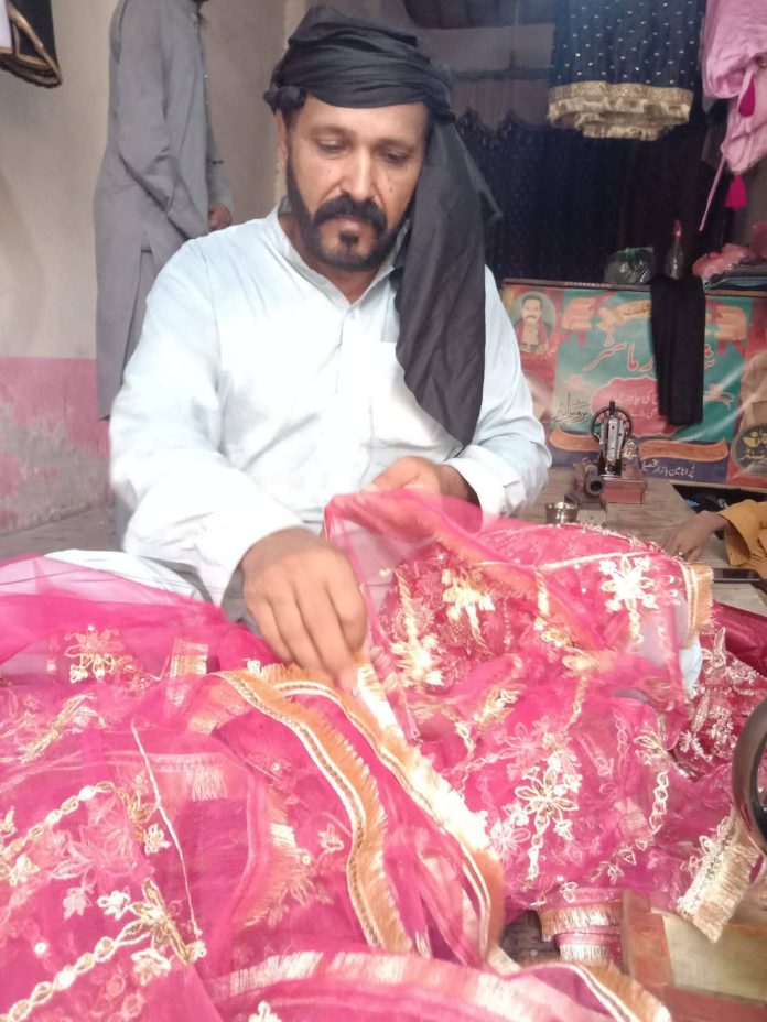 جہاں پر ٹیلر ماسٹر سید طاہر عباس شاہ نقوی اپنے شاگرد خاص مہدی حسین صدقانہ کے ہمراہ سلائی کے کام کی بروقت تکمیل اپنی نگرانی میں یقینی بناتے ہیں