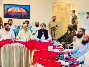 کے سیکرٹری اطلاعات ملک غلام مصطفی،جمعیت علماء اسلام سین کے رہنما مولانا حزیمہ سمیع، رہنما سنی علماء کونسل پنجاب راؤ اشرف حسینی،صدر جمعیت اہلحدیث اسلام آباد شیخ محمد اقبال، قاری افتخار احمد اٹک،مفتی شاہد نسیم،حافظ نصیر احمد، مولانا عبدالرحمن معاویہ،قاری نثار احمد،مولانا جمیل اختر انقلابی،حافظ احسان احمد، مولانا یعقوب طارق،کے ہمراء آل پارٹیز کانفرنس کے اعلامیہ کو پریس کانفرنس کے ذریعے خطاب کرتے ہوۓ کہا کہ ملک پاکستان کے حالات کو سامنے رکھتے ہوئے اہم عنوانات پر تمام سیاسی پارٹیز کو ایک پلیٹ پر دعوت دی ہے تاکہ متفقہ لائحہ عمل طے کیا جاسکے جس کے نکات مندرجہ ذیل ہیں۔