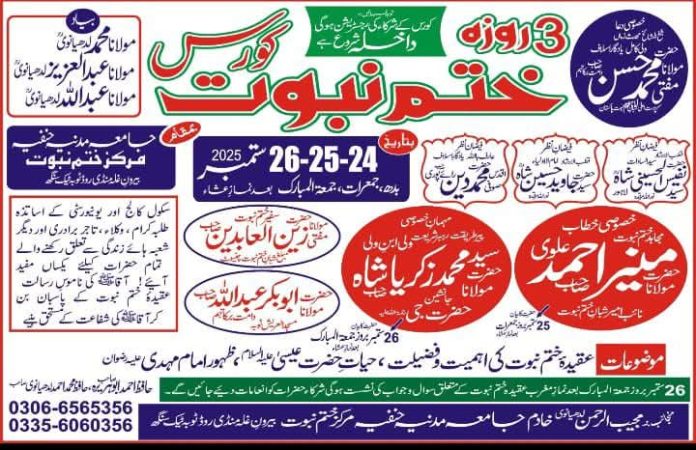 تین روزہ ختم نبوت کورس اور ہماری ذمہ داریاں