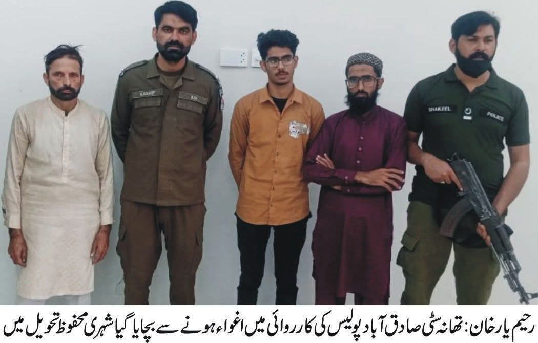 رحیم یارخان تھانہ سٹی صاد ق آباد پولیس نے لڑکی کے جال میں پھنس کر ہنی ٹریپ ہونے والے جھنگ کے شہری کو اغواء برائے تاوان کا شکار ہونے سے بچا لیا