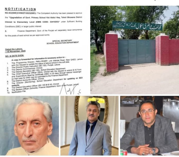 *دنیا میں کچھ لوگ ایسے ہوتے ہیں جو خود بھی روشنی میں جیتے ہیں اور آنے والی نسلوں کے لیے بھی چھوٹے چھوٹے چراغ جلا جاتے ہیں۔ انہی چراغاں کرنے والوں میں ایک نام مرحوم شیخ عبدالحق پوری ایڈووکیٹ کا ہے، جنہوں نے برسوں قبل کوٹ عبدالحق (موضع ہڈ) میں گورنمنٹ پرائمری سکول (بوائز) کے قیام کے لیے اپنی ذاتی زمین وقف کرکے خدمتِ خلق کی وہ بنیاد رکھی جو اب ایک تناور درخت کا روپ دھار چکی ہے۔ ان کی یہ نیکی محض زمین کی بخشش نہیں بلکہ علم کی سبیل جاری کرنے کا وہ عمل تھا جسے صدقہ جاریہ کہا جاتا ہے۔وقت گزرتا رہا، مگر نیکی کا بیج سوکھا نہیں… بلکہ اس نے پھر سے کونپلیں نکالیں۔ مرحوم کے فرزند، شیخ محمد رضوان الحق پوری جو اس وقت ڈپٹی سیکرٹری ہائر ایجوکیشن کے منصب پر فائز ہیں—نے اپنے والد کی روشن روایت کو نئی زندگی عطا کرتے ہوئے ایک اور بڑا قدم اٹھایا۔ انہوں نے اپنی ذاتی ملکیتی زمین محکمہ تعلیم کے نام وقف کر دی، اور اپنے خلوص، کوشش اور اللہ تعالیٰ کی مدد سے گورنمنٹ مڈل سکول (بوائز) کی منظوری حاصل کر لی۔یہ فیصلہ صرف ایک سکول کی منظوری نہیں بلکہ آنے والے زمانوں میں سینکڑوں بچوں کے خوابوں کی تکمیل کا ذریعہ ہے۔ یہی وجہ ہے کہ عوامی حلقوں نے ان کی اس کاوش کو حقیقی معنوں میں “خدمتِ عملی” قرار دیا ہے۔ جس علاقے میں کبھی بچے فاصلے طے کر کے تعلیم حاصل کرنے نکلتے تھے، آج وہیں تعلیم خود چل کر آ پہنچی ہے۔ یہ یقیناً ایک ایسے خاندان کی جاری سنت ہے جو زمین بھی دیتا ہے اور علم بھی بانٹتا ہے۔اس کارِ خیر میں صوبائی وزیر تعلیم جناب رانا سکندر حیات کا تعاون بھی خصوصی طور پر لائقِ تحسین ہے، جنہوں نے اس منصوبے کی منظوری کے مراحل میں نہ صرف دلچسپی لی بلکہ اسے بروقت ممکن بنانے میں بھی اہم کردار ادا کیا۔اللہ تعالیٰ اس خاندان کے اخلاص کو قبول فرمائے، مرحوم شیخ عبدالحق پوری کے درجات بلند کرے، اور انہیں مزید نیکیوں اور روشنی بانٹنے کی توفیق عطا فرمائے۔*